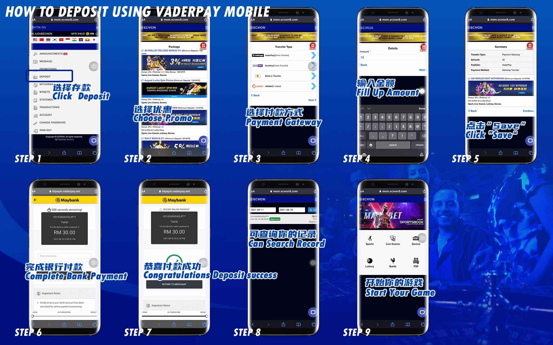 Please follow these steps to make a deposit via mobile phone :